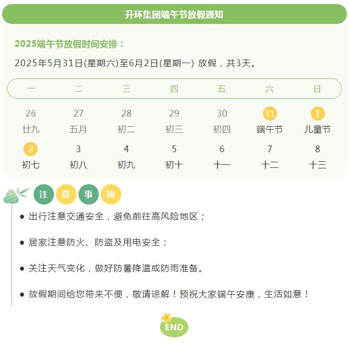 端午安康| 升环集团放假通知